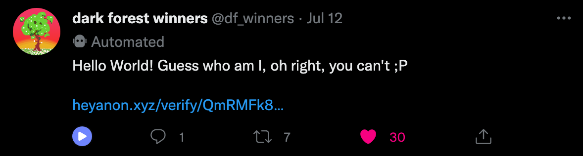 heyanon is an open-source app allowing users to anonymously tweet as a verified member of on and off-chain groups using ZKPs. In a world where users have to choose between the extremes of using their real-world identity or being fully pseudonymous, heyanon is working towards a future where you can select a subset of your identity and reputation to attach to your speech online. Feeds for different groups are curated by the @heyanonxyz Twitter account, which serves as the homepage of the project. Up until SBC, we had primarily focused on Ethereum-based groups like Dark Forest winners & Gitcoin donors, which are composed of ECDSA addresses: